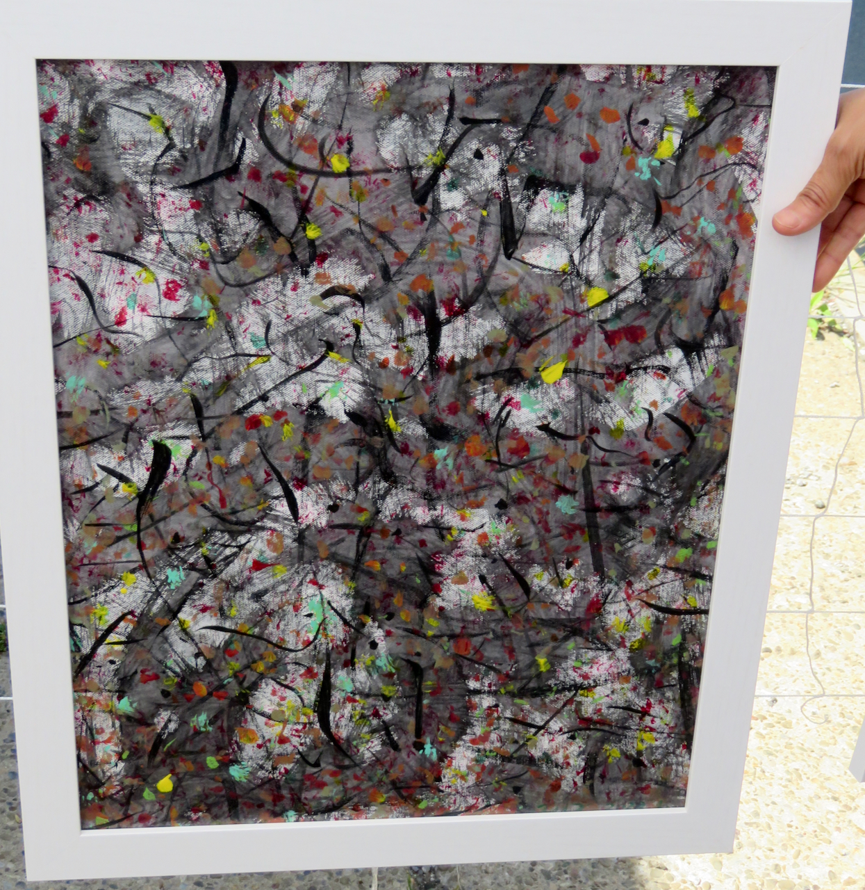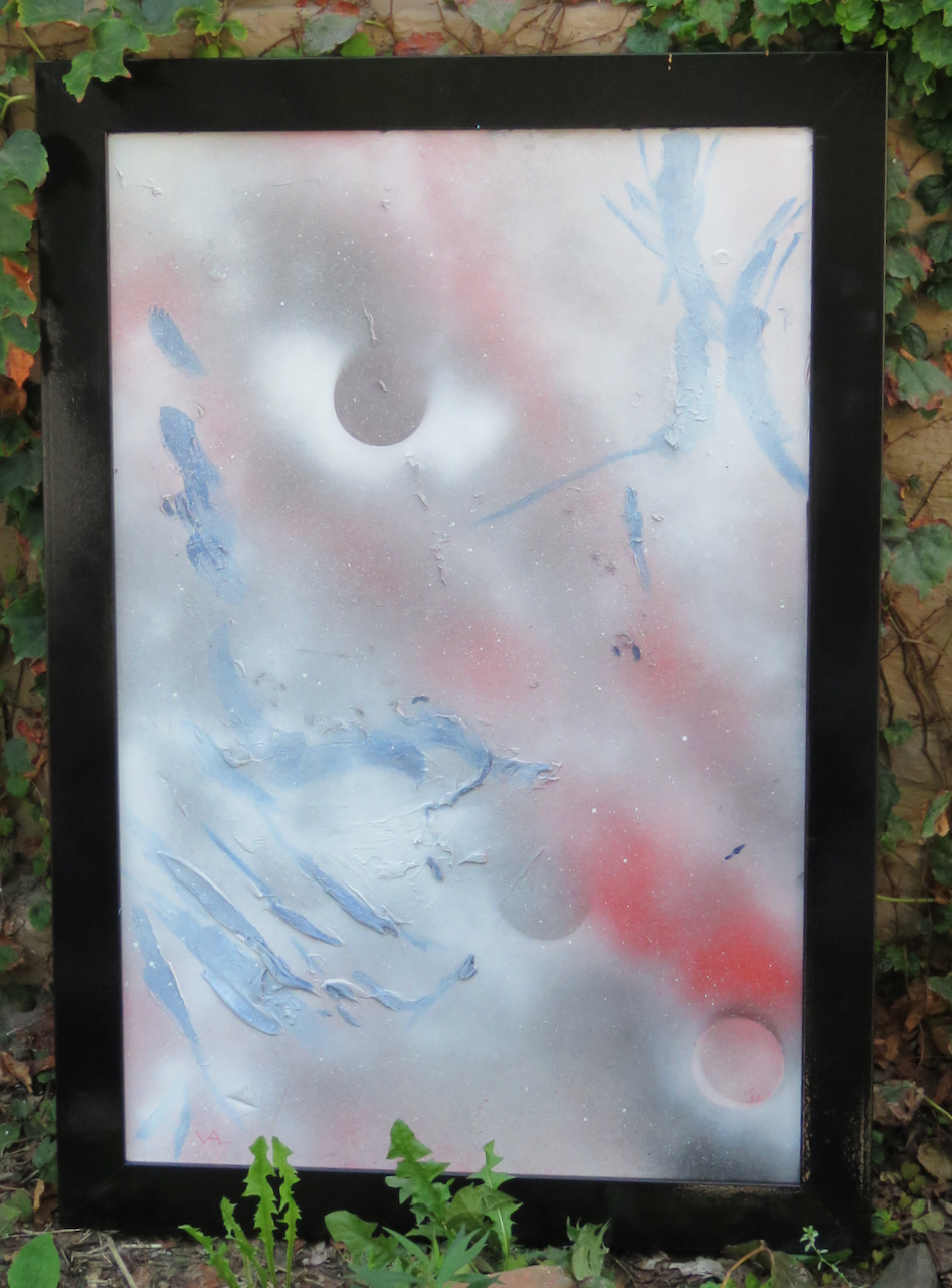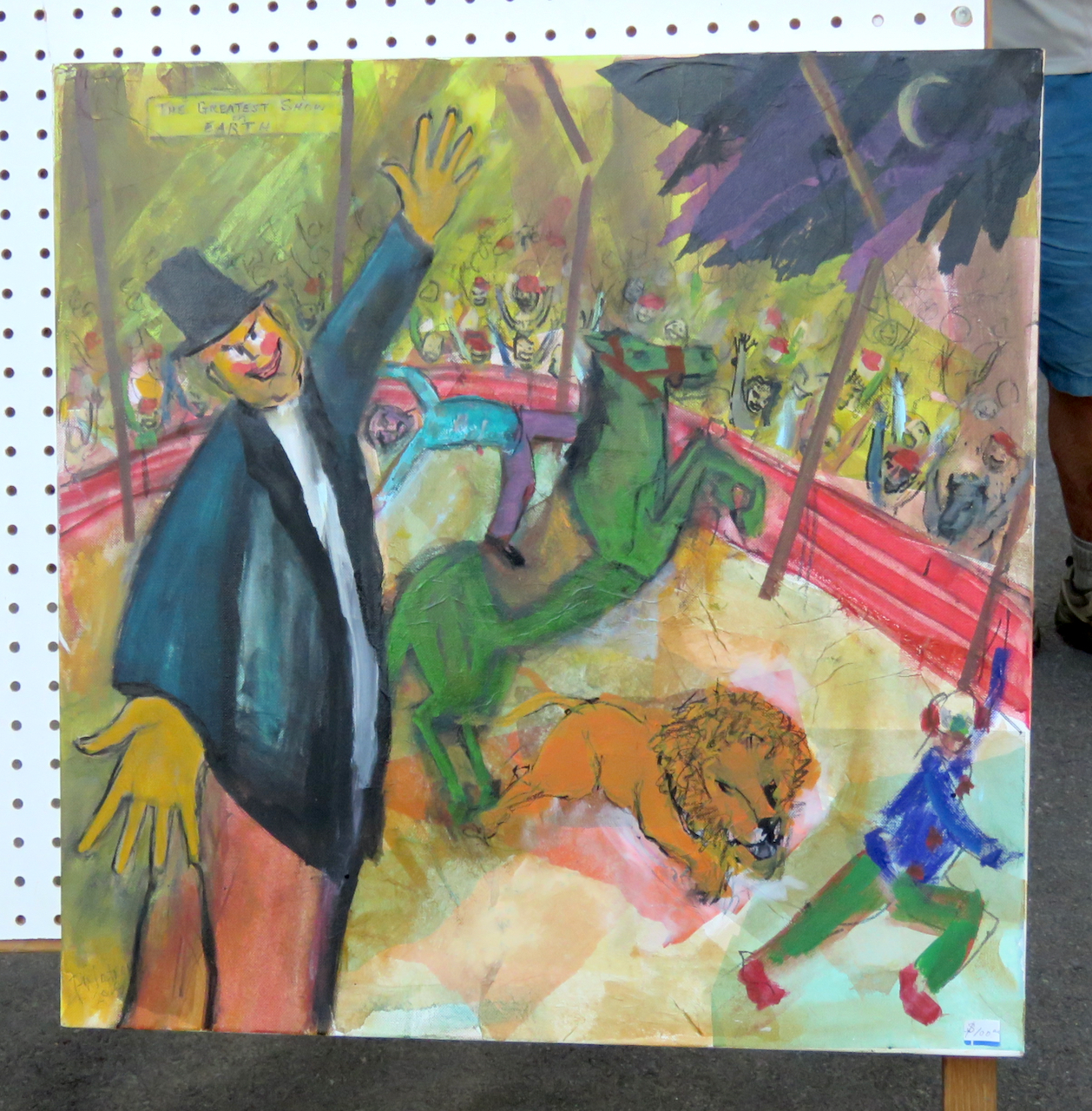Instead of a forest of Miletta pieces, there were only two paintings left in view by the time I raised my camera. [photo above] Mark would not risk leaving any out. So, I’m featuring each of the upright survivors that were the last to be packed away.