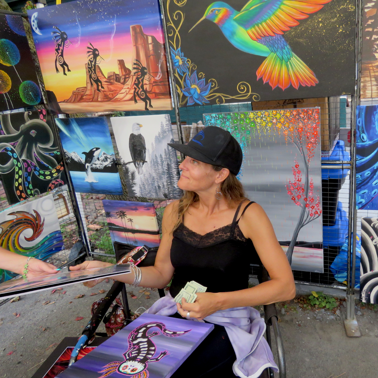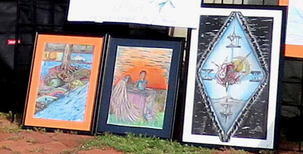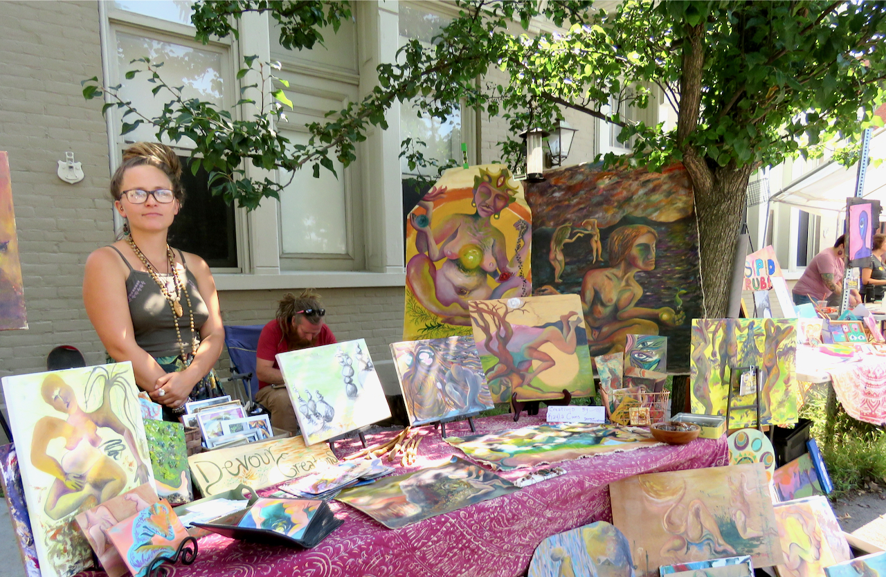 KAYLA COONS of DEVOUR-CREATIONS appeared this year for the first time at SOAS. Her exhibit was behind Lawrence, at the corner of N. Ferry and Front Streets. There was a lot to take in: