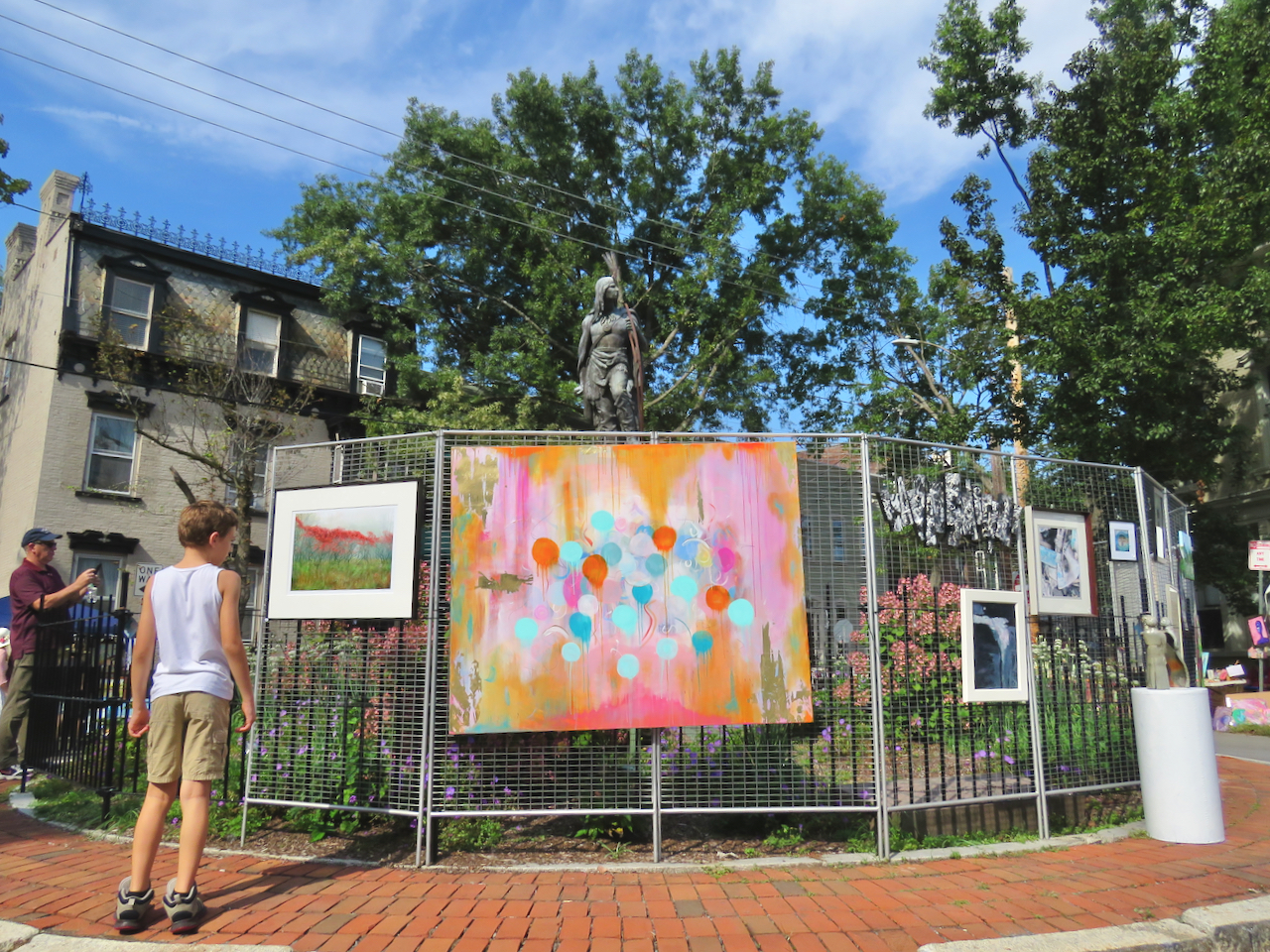 . . Lawrence Circle is the heart of the Stockade neigborhood and center of the Outdoor Art Show. . I bet Lawrence was tempted to walkaround the fence to see Britney Prime’s joyful balloons . .