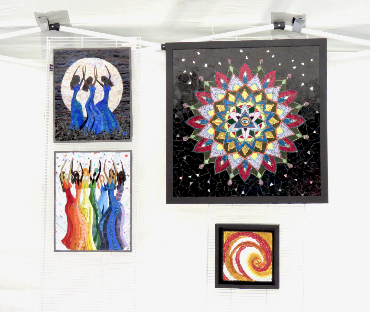 . . Much to my surprise, the next tent held LINDA BIGGERS, who I had not seen in years, with her mosaic art. When I last saw Linda at SOAS (2015?), her daughter Molly was displaying her own photography. Molly has moved on to other endeavors. Thankfully, Linda still loves creating eggshell mosaics: