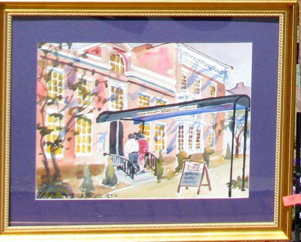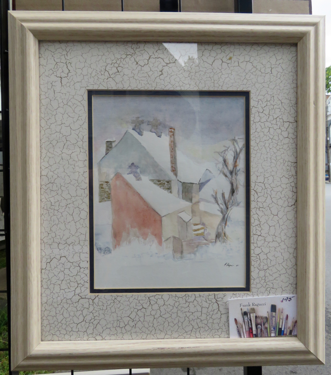 Then, when I crossed Front St. behind Lawrence Circle, I found my neighbor and 1st-Time-Exhibitor FRANK RAGUCCI, and finally got to see some of his art, such as the sketch in the frame at the head of this paragraph. Frank and his wife live on the same Stockade corner that I do (see image above right). Frank was enthusiastic for me to be a First Time Exhibitor myself, but I correctly decided that “just” trying to photograph and post about the Show was far more than enough for me.