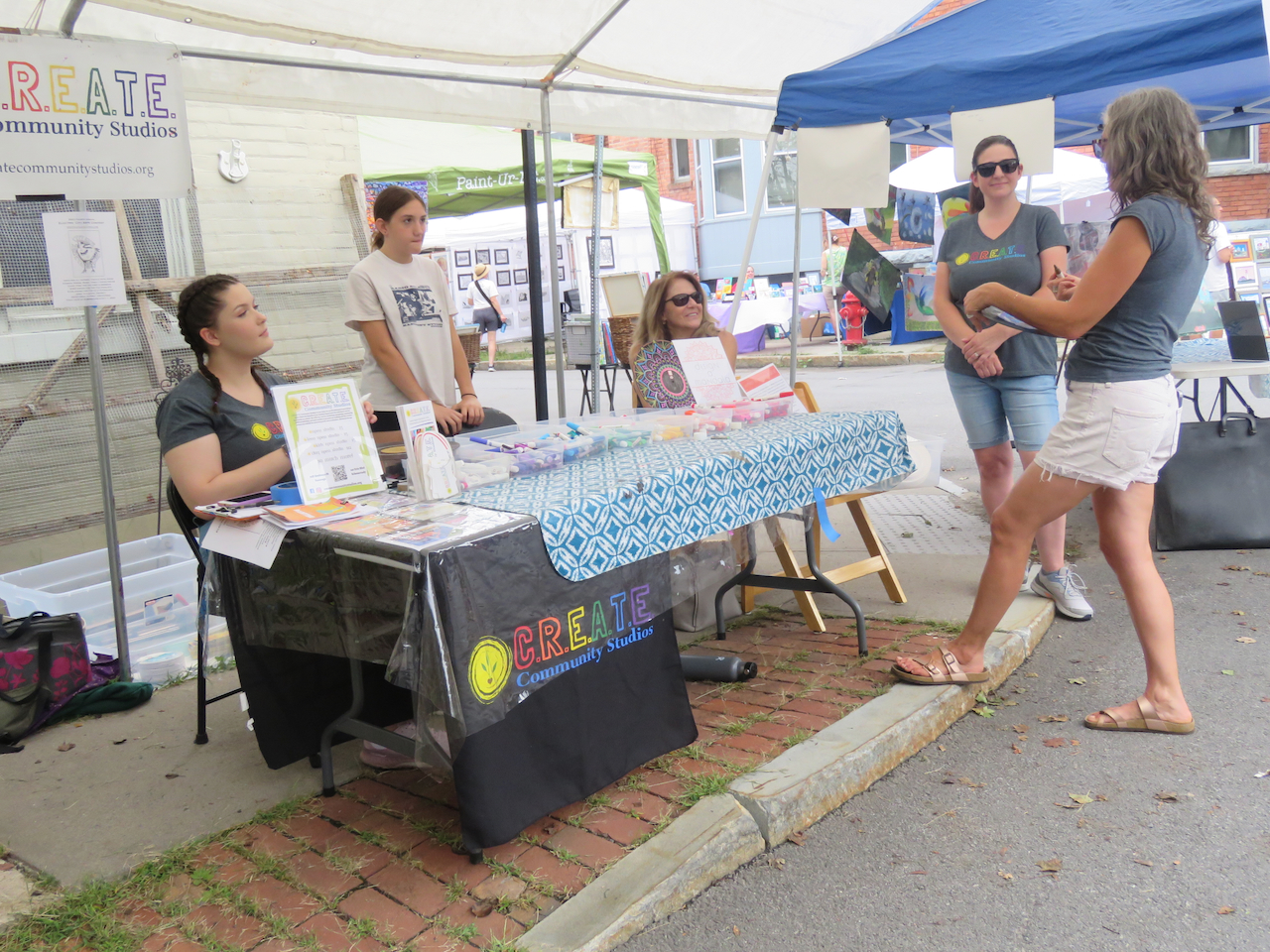 Heading to Green Street, I was greeted by the enthusiastic folks at the C.R.E.A.T.E. community studios exhibit table, but we bemoaned the scarcity of children taking advantage of their art supplies and mentors. Were they all dancing at the Greek Fest or enjoying the delicasies at the Italian Festa downtown?