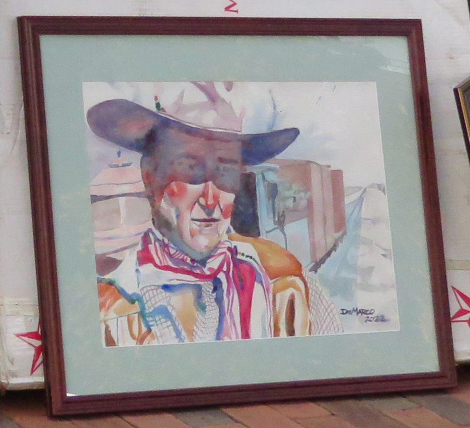 Time has been flying a lot the past couple of decades. I first saw the signature “Demarco” on a painting at SOAS in 2010, when Charles was awarded the Best Stockade Depiction award (see above on right). And, then I had an enjoyable conversation with Mr. DeMarco in 2013, followed by several photos of his work, and that of Judy Hall-D’Angelo, at this weblog. Since then, I look for Charles and Judy and was happy to see them at the very end of my route around the Show. Here are a few DeMarco paintings that drew my lens and my appreciation: