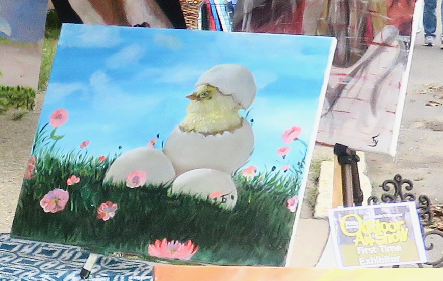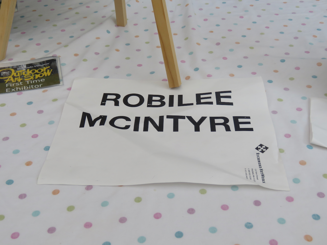 This was my grandson’s (Harrison) first show; he had a wonderful time! Everyone was so kind, enthusiastic and encouraging; he can’t wait for next year! His great grandmother (Mae Russell) also participated in the art show for more than 30 years; Harrison used her racks and set up near “her spot.” Thank you for the fantastic day!