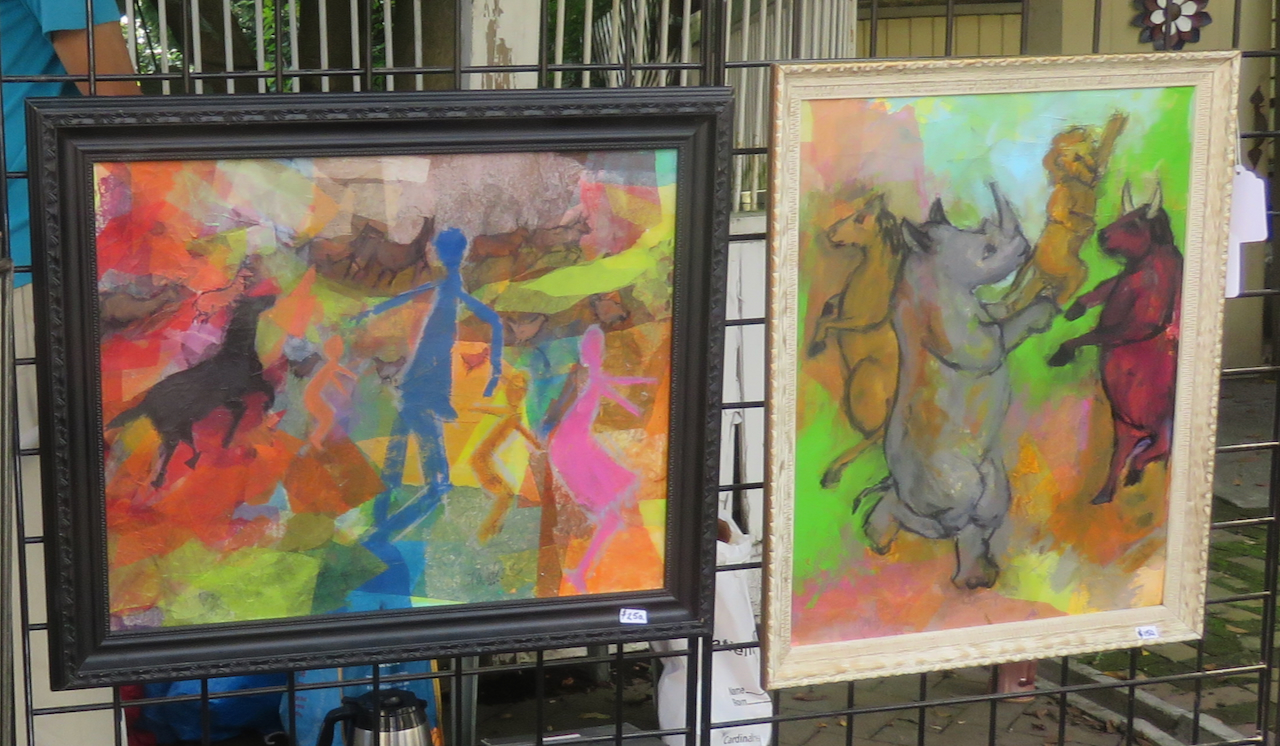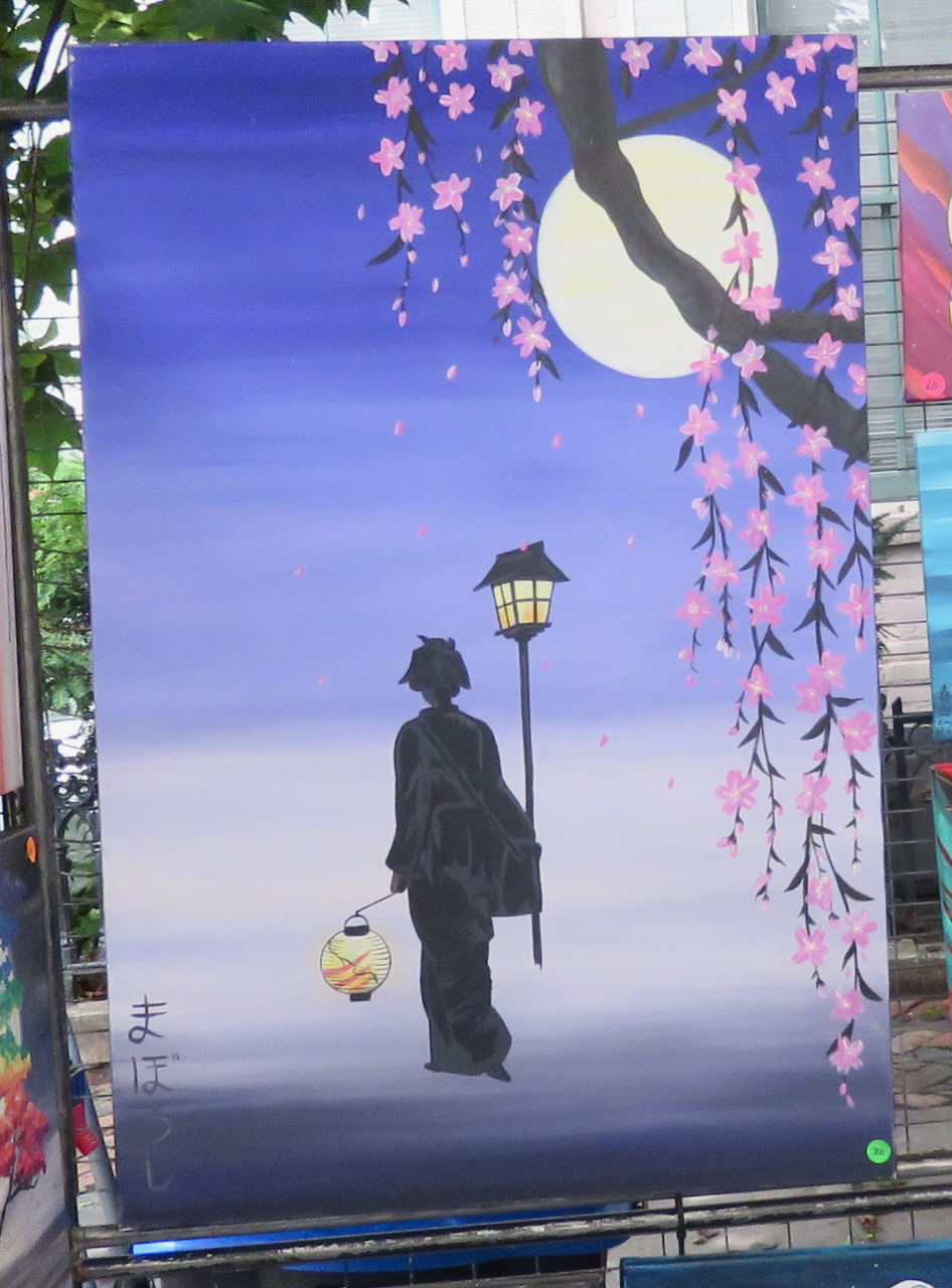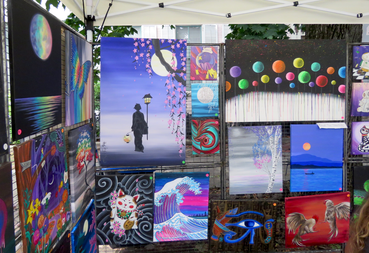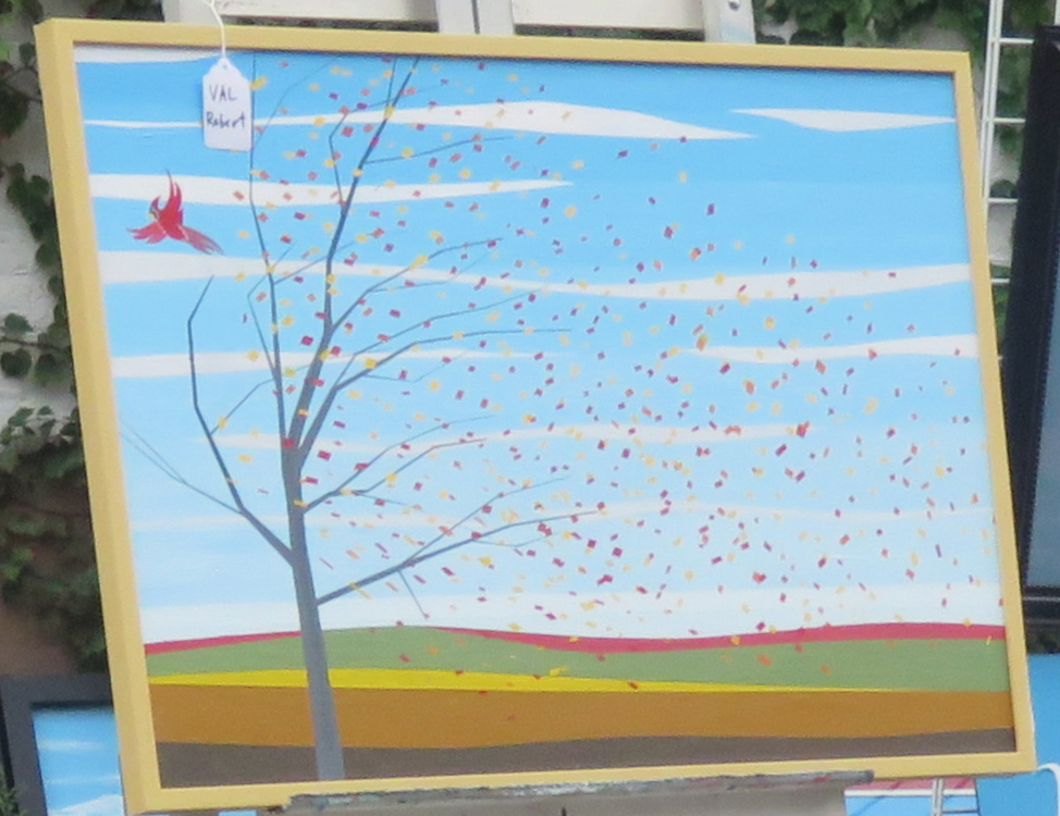 Turning onto Green Street, there was a happy sight: two of my favorite returning artist exhibits: the tent of Anping Liu and Xiaoping “Sherrie” Xu, and Val Robert’s vibrant spread. [to be continued]