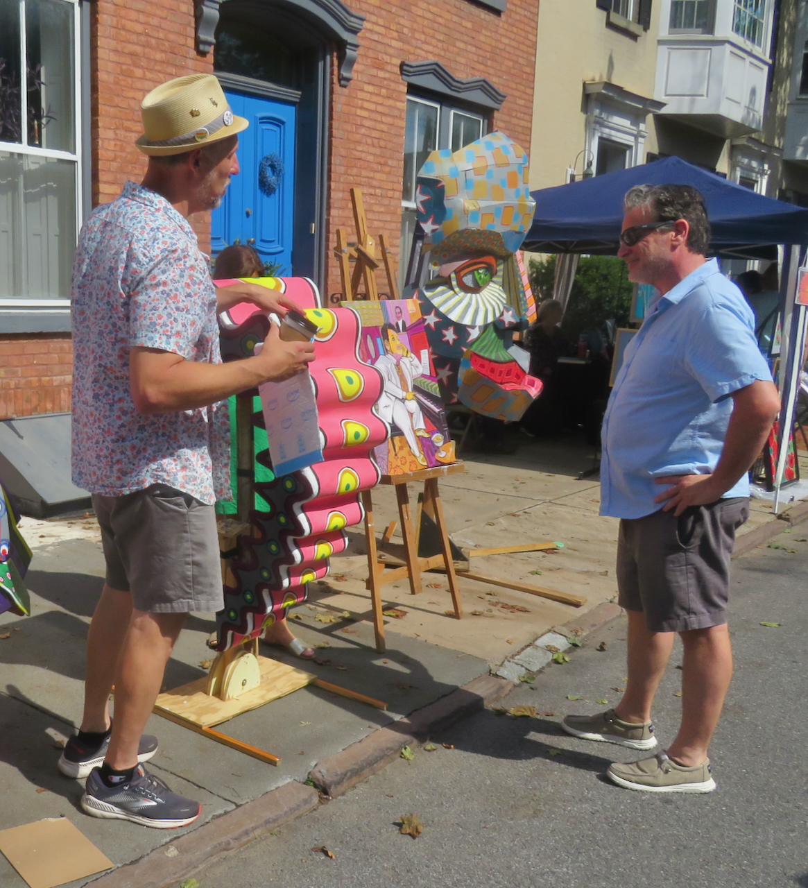 Another prolific and talented Stockade neighbor, Craig Petreikis, was across the street in front of 33 Front Street, with memorable, colorful shapes and his trademark smile.