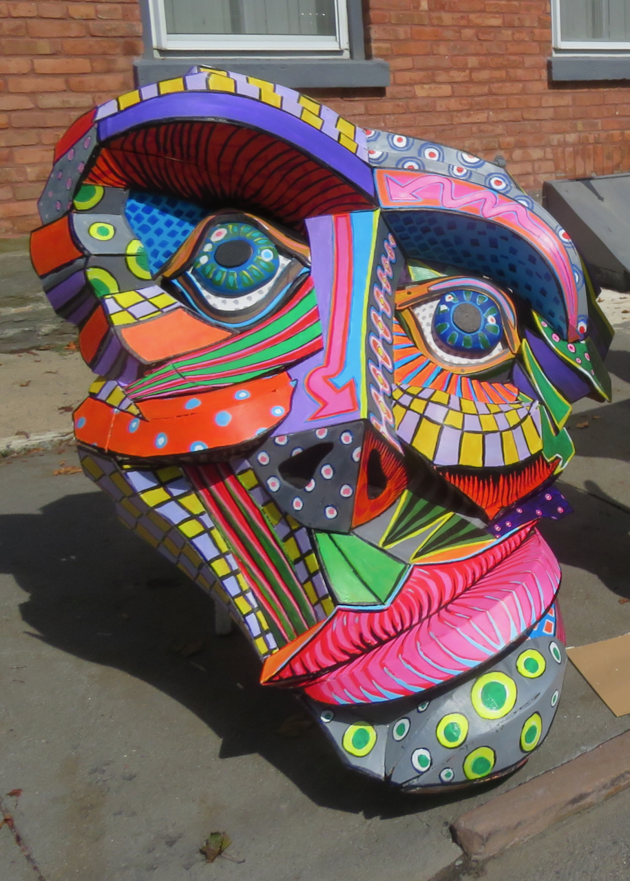 ALEXA BRANIC was introduced above with this year’s panel of Honorably Mentioned artists for her depiction of a grumpy cactus-like robo-creature; she is also captured using what may be her Happy Dance as she leaves Lawrence Circle with HM ribbon and envelope in hand. I hope she returns next year so I can learn about her artistic styles and intentions.