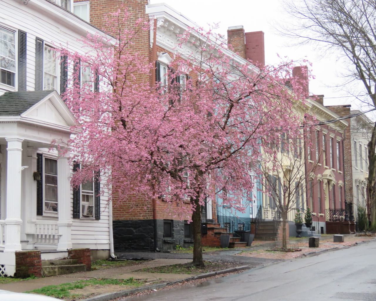 Our dreary Schenectady cherry blossom crop in 2023 was virtually nonexistent, after only a minimalist showing in 2022. So, I was worried as the season approached about the quality of this year’s (2024) cherry blossom arrays in the Stockade and elsewhere in Schenectady. But, I learned that I had nothing to fear, seeing the rapid blooming on April 11 and 12, of large and far more colorful blooms. And, the blooming continued for days, as we reported with glee omn Aprio 16th.