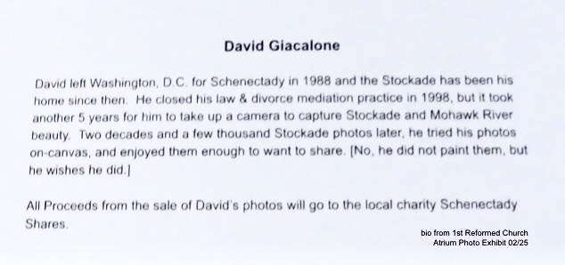 The Mohawk River and Riverside Park form the northern boundary of the Stockade Historic District, in Schenectady, NY. In photos taken from his block near Cucumber Alley, and on short strolls around the neighborhood, David Giacalone presents views of and from the Mohawk, Riverside Park, and the Stockade (and Downtown Schenectady, too) — with sunsets, special events, seasonal sights, and surprises.