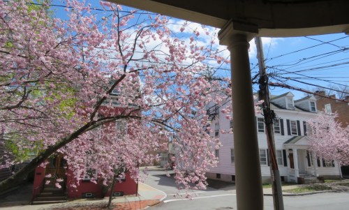 . . I’m a lucky man. The above photo shows the view out my front door yesterday, April 22, Earth Day. Beauty, blueskies and a gem of a neighborhood help me to forget about aches or complaints about local or national politics, and to count my blessings, one of which is being able to share my pleasure thanks to my camera and websites.