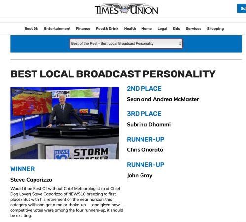 UPDATE: More Honors for Steve: Times Union Best Of Capital Region 2025, May 16, 2025):