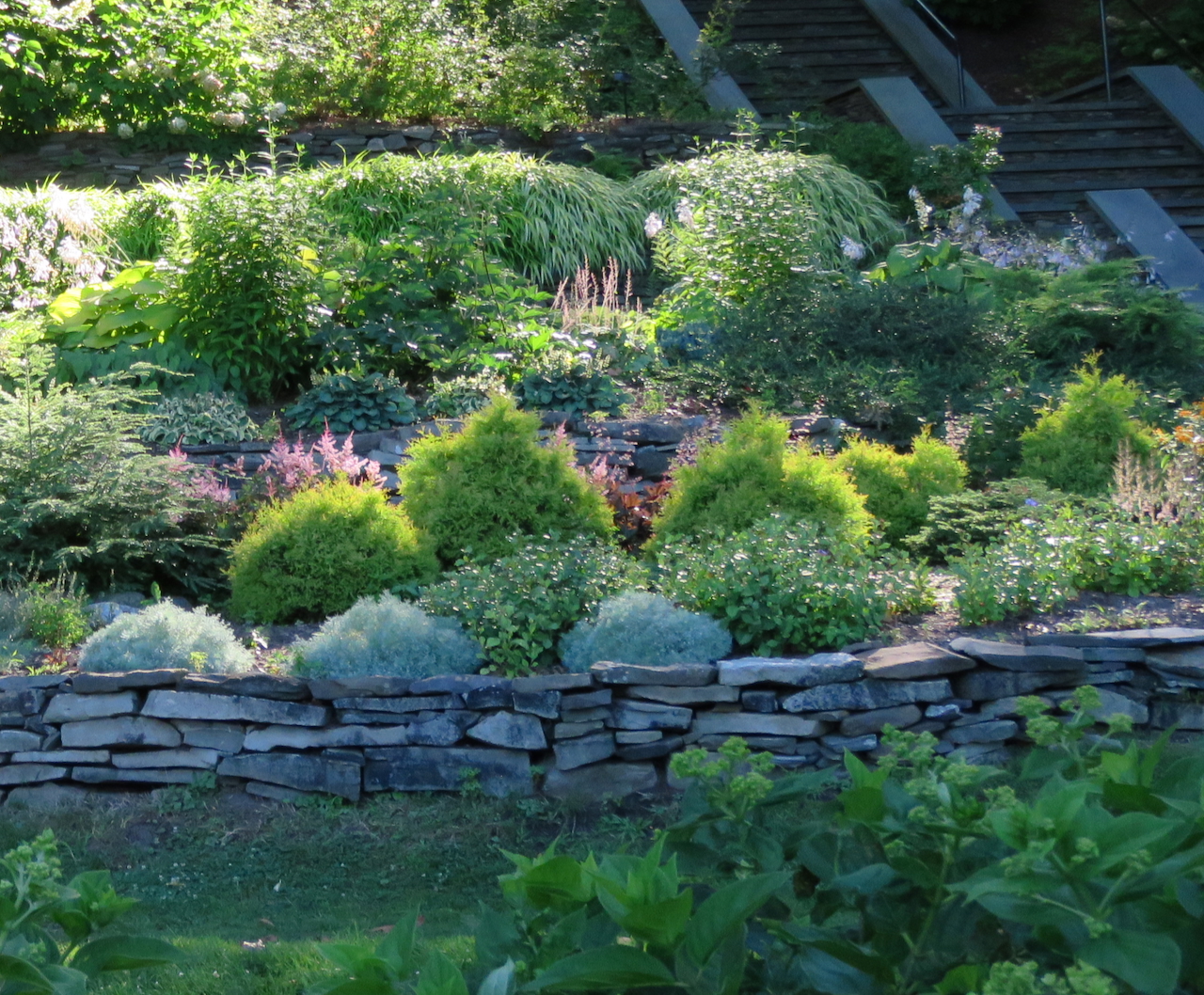Even with many roses past-peak, the art-filled Garden was lovely and the weather perfect. Here are a few more scenes from a special evening. [click on a mosaic tile for a larger image]