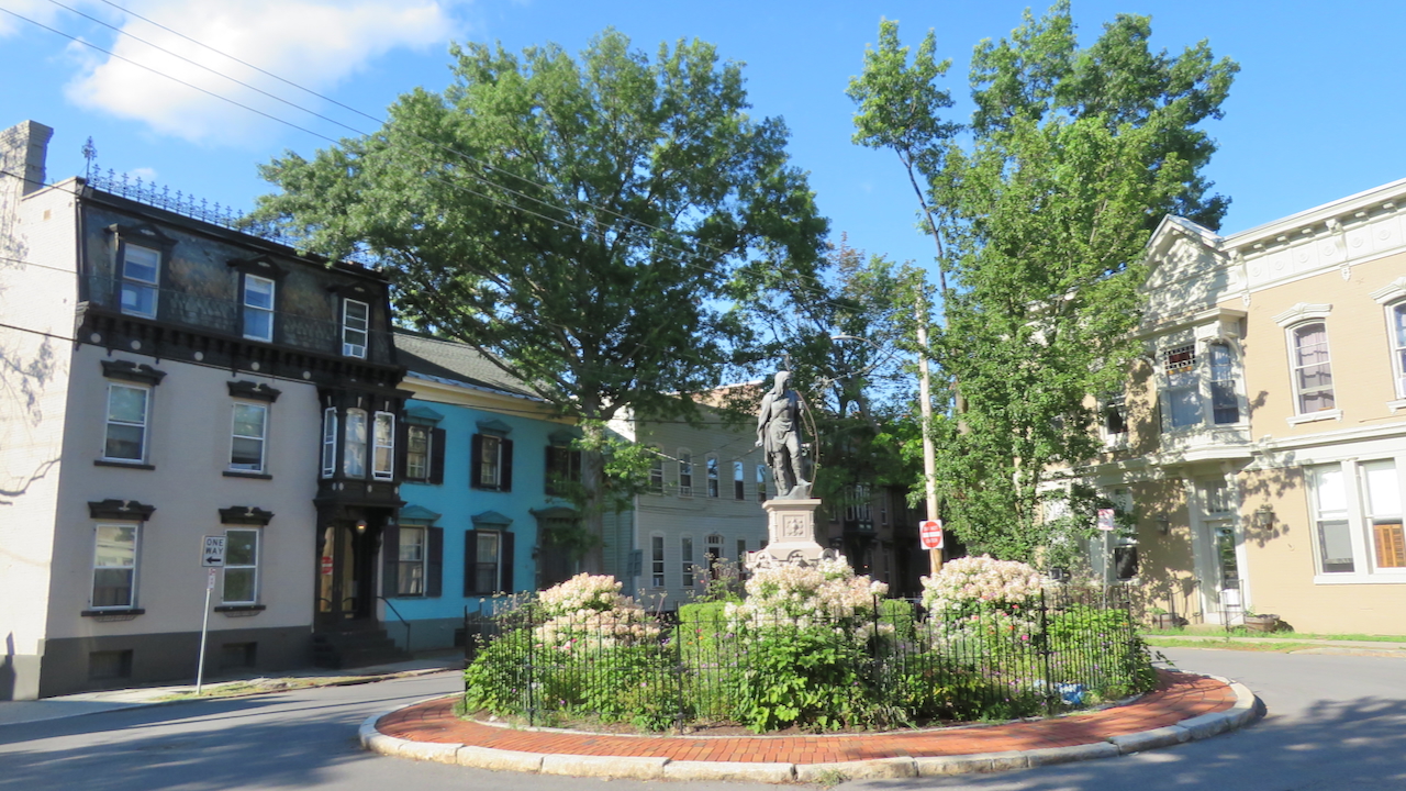 Meanwhile, all month long, I again got to enjoy large chocolate chip sourdough cookies, and the good vibes of the Bland family, at the Schenectady Trading Company (10 North Center Street). With the added bonus of seeing my photo-canvases displayed, with proceeds from an occasional sale going to Things of My Very Own. [image shows a canvas featuring the St. George’s steeple and a stunning painting by Sherrie Xu from the 2021 Stockade Outdoor Art Show.]
