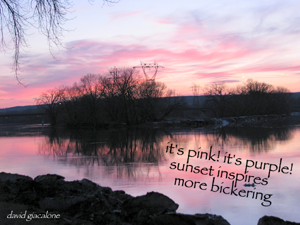 The haiku genre of poetry is often misunderstood. Despite what your grammar school teacher might have taught you, the consensus among English-language haiku poets, journals and associations is that haiku need not be written in three lines having 5, 7 and 5 syllables per line. Equally important, despite the so-called “haiku contests” you may see in the media or on the web, verse written in the form of three lines having 5, 7 and 5 syllables per line is not haiku unless it conforms to the basic characteristics of the genre. Definitions are tricky and evolving, but here is my attempt at quick definitions of haiku and the related form senryu, which are used in my photo-haiga. [for more on this topic, go here]