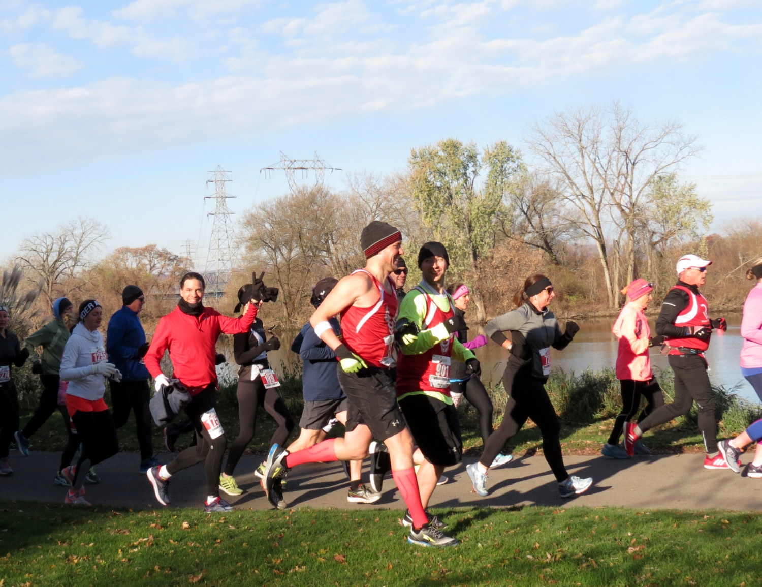 This slideshow has four dozen photos in the order they were taken this morning. I’ve included as many as possible and hope runners (or their friends and families) will enjoy finding and seeing themselves.
