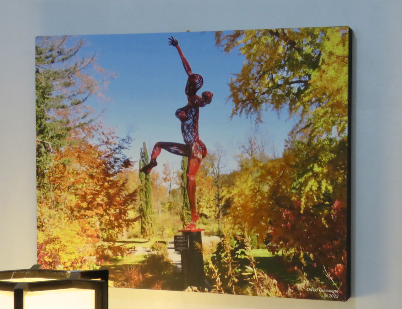 The popular Red Dancer sculpture at Union College (by Jack Howard-Potter) looks pretty good on canvas, especially with Jackson’s Garden showing-off autumn colors behind it (last week of October, 2022).