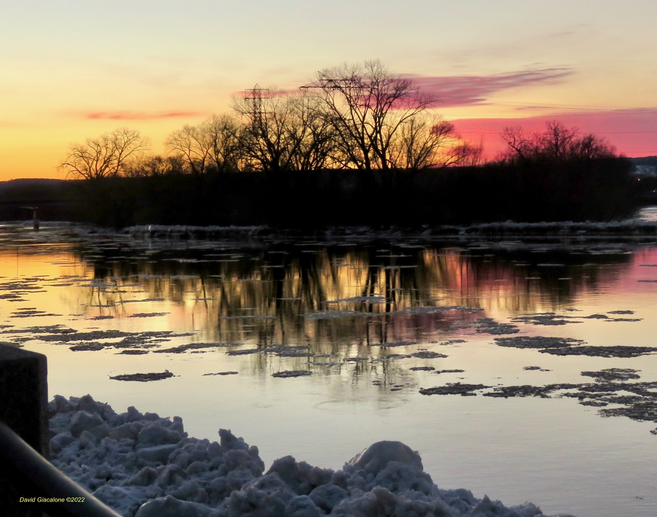 . . . . Also below: Looking west from the Riverside Park Overlook toward the Isle of the Cayugas with ice sheets on the Mohawk (Feb. 2022)