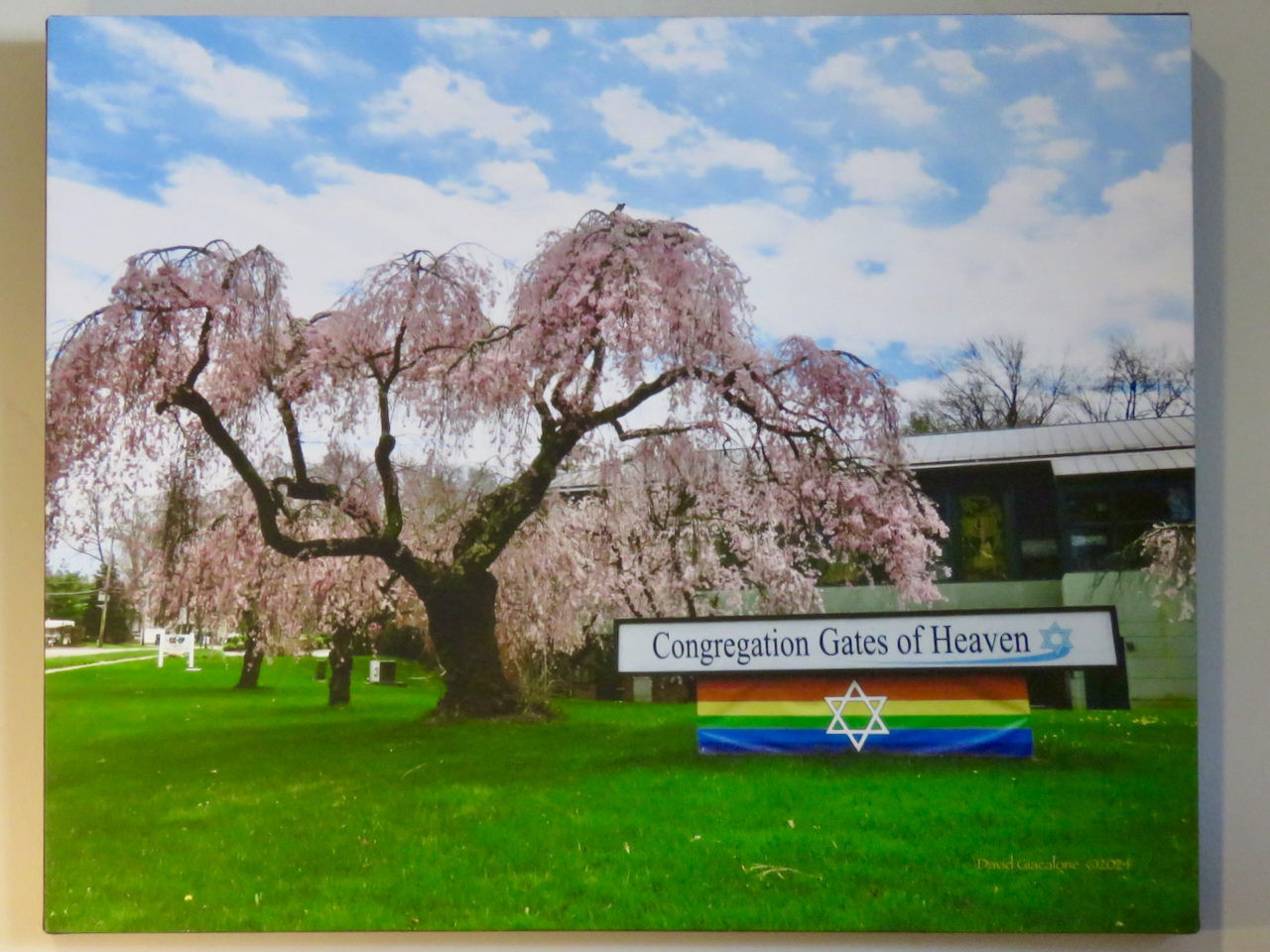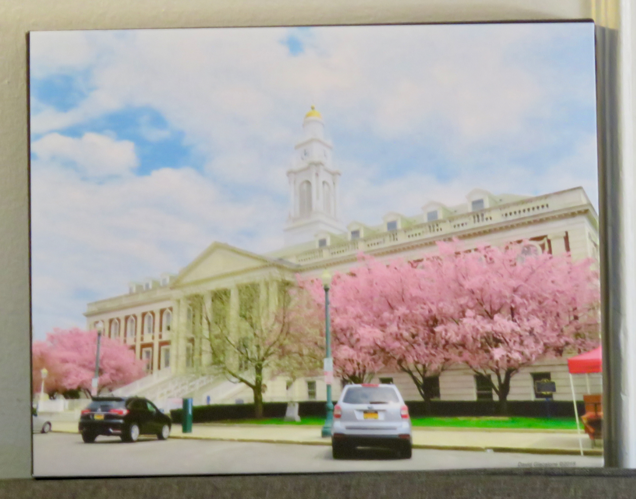 . . the City Hall photos in the above collage and on the canvas below are my memorial to the beautiful, healthy cherry blossom trees needlessly removed in 2019: