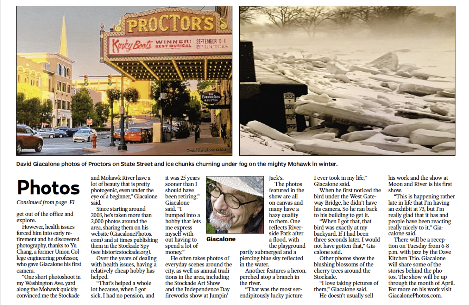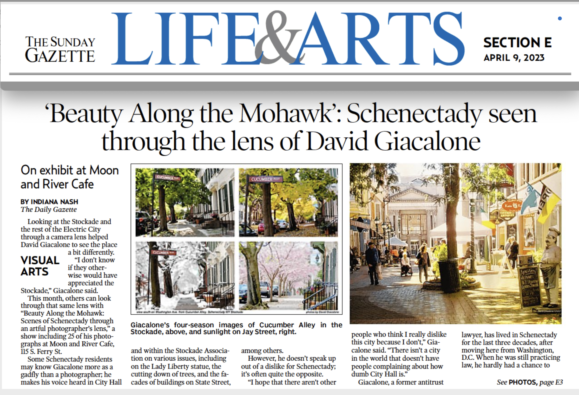 NOTE: As described in our April 1st 2023 webpost, many of the photo-canvases on this page were on display during April 2023, at the “cozy and intimate” Moon & River Cafe, 115 So. Ferry St. in the Stockade neighborhood. Many thanks to all who came to our Reception on Tuesday, April 11, from 6 to 8 PM, with music by the Dave Kitchen Trio, and to all those who dropped in througout the exhibit. . . . With gratitude to Richard Genest, proprietor chef. and Olondo (Otis) Hundley . . . . . And, humble thanks to Indiana Nash and the Daily Gazette for a fine article; see First Part and Second Part.