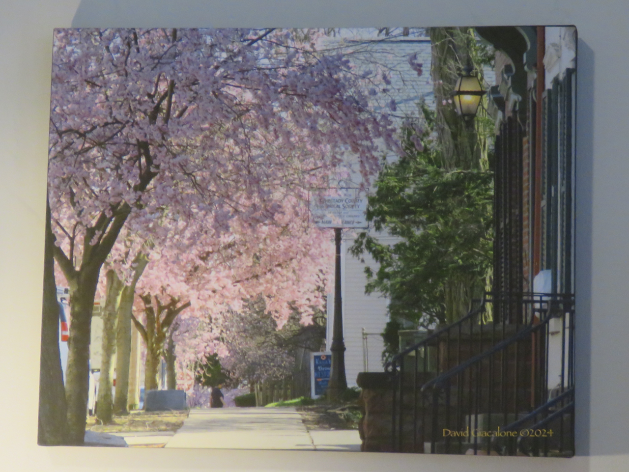 above: A photo taken April 20, 2024 at Congregation Gates of Heaven, Eastern Parkway and Ashmore St. in Niskayuna, with its majestic weeping cherry blossoms; below: cherry blossoms seen on Washington Ave. in the Stockade, looking south from Cucumber Alley near the Schenectady County Historical Society, on April 15, 2024.