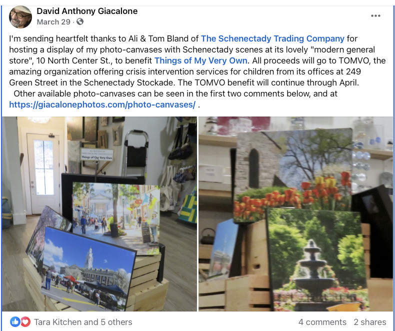 . . from my Facebook Page: Canvases on Display at SCHENECTADY TRADING COMPANY – March & April 2025